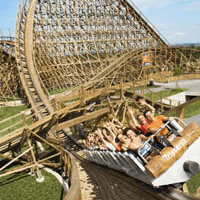 Erleben Sie über 100 originelle Attraktionen und die neue Holzachter- bahn "Mammut". In Zügen, die wie Sägen aussehen, brettern Sie mit über 80 Sachen durch eine Sägemühle. Bereits im Wartebereich tauchen Sie in die Welt der Sägemühle ein - historische Ausstellungsstücke aus ganz Deutschland sind hier zu sehen. Europas höchste Wildwasser- Schussfahrt: Zuerst rückwärts im Schuss, dann vorwärts im Sturz mit 60 km/h in den Burgsee. Die Badewannen-Fahrt zum Jungbrunnen erfrischt Jung und Alt. 3fache Erdanziehung, ?saumäßig? schnelle Kurven um die Burg ?Rauhe Klinge? und ein Waagrecht-Looping. Danach fühlen Sie sich in der ?G?sengten Sau? einfach mehr als sauwohl! Was beschaulich im Waschhaus mit der Geschichte des Waschens beginnt, wird zum mitreißenden Erlebnis. In riesigen Waschzubern treiben Sie wildromantisch stromabwärts. Erfrischend geht es im Wassergarten zu. Und in der Moggelesbahn, der Enten-Wasserfahrt oder dem Wäschekorb-Rundflug kommen die Kleinsten ganz groß raus. In der Dorfstraße mit ihren urigen Fachwerkhäusern können Sie bummeln und einkehren. Steuern Sie bei der Familien-Attraktion "Maibaum" selbst ihre Gondel und bestimmen so, wie hoch Sie "abheben". Genießen Sie dabei die Aussicht über die blühende Parklandschaft. Via Stromberg-Express ins Wildparadies: 47 ha Wald, Deutschlands größte begehbare Flugvoliere für Adler und Geier und wilde Tiere hautnah. Fütterung täglich 14.30 Uhr (außer freitags). Hereinspaziert das ganze Jahr! Wandern Sie doch mal in Freigehegen von stolzem Damwild, seltenen Hirscharten und Mufflons - Füttern und Anfassen ist erlaubt! Alles im grünen Bereich! Imposant: Schauflüge unserer Greifvögel. Abenteuerlich: Spielplatz mit Baumhaus und Hängebrücke. Wetterunabhängig: die überdachte Grillhütte. |