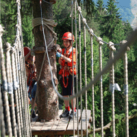 Der Kletterwald Garmisch-Partenkirchen, direkt oberhalb der Talstation Wankbahn, gehört inzwischen zu den größten Freizeitattraktionen des bekannten Wintersportortes. Das 1,5 Hektar große Waldgrundstück präsentiert sich als Abenteuerspielplatz erster Güte. 6 verschieden schwere Parcours mit über 79 Kletterelementen laden dazu ein, wieder einmal nach Herzenslust zu kraxeln, balancieren und zu springen. Von niedrigen Parcours in Bodennähe, einfach und verspielt für die Kleinsten, bis hin zu abenteuerlichen Hängebrücken in 17 Metern Höhe, für jeden ist etwas dabei. Lianen, Elefantenbrücke, ein schwebendes Fahrrad, das Riesen-Spinnennetz, ein tanzendes Xylophon und vieles mehr warten darauf, bezwungen zu werden. Die Parcours sind so angelegt, dass sich jeder langsam steigern kann. Gut gesichert lassen sich hier gefahrlos Gleichgewicht, Geschicklichkeit, Mut und Kraft testen. Ob man mehrmals einen leichten Parcours durchklettern, oder sich in die höchsten Wipfel vorantasten möchte, dass bleibt jedem selbst überlassen. Für den Besuch des Kletterwaldes sind keine besonderen Vorkenntnisse notwendig, die komplette Sicherheitsausrüstung wie Helm und Gurtzeug wird vor Ort gestellt. Professionell ausgebildete Trainer weisen jeden ausführlich ein und stehen gerne mit Rat und Tat zur Seite. Im Kletterwald Garmisch-Partenkirchen lassen sich alleine, mit der Familie oder in der Gruppe echte Abenteuer erleben. Kinder können bereits ab einem Alter von sechs Jahren mit dabei sein, bis einschließlich 13 Jahre ist immer eine Begleitung durch Erziehungsberechtigte erforderlich. Spezielle Kindergurte sorgen bei den Kleinen für die nötige Sicherheit. Lange Wege zum Kletterwald gibt es auch nicht, der Hochseilgarten ist zu Fuß in 5 Minuten von der Talstation Wankbahn in Garmisch-Partenkirchen aus zu erreichen. Der Hochseilgarten ist außerdem kein reines Schönwetter ? Angebot: Geschützt unter dichten Ästen ist man den Wetterkapriolen nämlichen nur bedingt ausgesetzt. Für Schulklassen, Betriebe, Vereine und Gruppen gibt es Spezialangebote. Der Kletterwald hat täglich geöffnet von 9.30 Uhr bis 18.00 Uhr und eine Anmeldung ist nicht notwendig. In Garmisch-Partenkirchen einfach der Beschilderung Wankbahn bzw. Kletterwald folgen, so kommt man automatisch zum Hochseilgarten. |