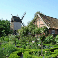 "Schleswig-Holstein an einem Tag" Das Schleswig-Holsteinische Freilichtmuseum in Molfsee bei Kiel ist das größte Freilichtmuseum Norddeutschlands. Es interpretiert die Kulturgeschichte und Volkskunde des ländlichen Raums. Auf dem 60 Hektar großen Gelände mit Wiesen, Gärten, Feldern und Teichen sind über 70 historische Gebäude, Hofanlagen und Mühlen der verschiedenen Landschaften Schleswig-Holsteins mit Mobiliar, Hausrat und Arbeitsgeräten zu sehen und zu erleben. Tiere, wie sie früher auf den Höfen gehalten wurden, sowie den Häusern zugeordnete Gärten ergänzen die Anlage, um einen möglichst vollständigen und lebendigen Eindruck vom Wohnen und Wirtschaften vergangener Jahrhunderte zu vermitteln. Handwerker (Korbmacher, Schmied, Drechsler, Töpfer, Weberinnen, Holzbildhauer) demonstrieren ihre Tätigkeiten in verschiedenen Gebäuden und verkaufen teilweise ihre Produkte. In mehreren Gebäuden werden außer der zugehörigen Ausstattung verschiedene Einzelsammlungen gezeigt: landwirtschaftliche Geräte, Spielzeug, Meiereimaschinen. Es gibt eine Darstellung zur Geschichte des Mühlenwesens sowie eine Dokumentation und Ausrüstung zum Walfang, Dokumentationen zum Armenwesen und zum Leben auf einer Hallig. Eine Apotheke mit einer Ausstellung und einem Kräutergarten gewährt Einblicke in die Geschichte der Pharmazie. Eine Museumsbahn bringt sie bequem durch das weitläufige Gelände. Auf dem historischen Jahrmarkt laden zwei Karussells, Schiffschaukel und ein großer Spielplatz zum Vergnügen ein. Für das leibliche Wohl sorgen Produkte aus der Meierei, dem Backhaus, der Räucherkate sowie der Fischräucherei, Imbissmöglichkeiten bieten Meierei und Kiosk. Am Eingang lädt das Museums-Restaurant Drathenhof ein. |