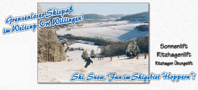 Skigebiet "Hoppern" Die verschiedenen Schwierigkeitsgrade der Pisten bieten Anfängern, Familien und Ski-Assen hervorragende Skibedingungen. Verbindungsabfahrten wie zwischen Sonnenlift und den Ritzhagenliften von über 2 km Länge wird man nur selten im Mittelgebirge finden. Eine Beschneiungsanlage im Bereich der Ritzhagen-Lifte erhöht hier die Schnee- sicherheit und sorgt für hervorragende Skibedingungen. Als Familienbetrieb bemühen wir uns mit zwei modernen Pistenraupen rund um die Uhr um eine optimale Präparierung der Ski-Pisten. Durch das computergesteuerte Kassen- und Zugangssystem ist jeder Skipass an allen Liftanlagen - ausgenommen den Übungsliften - im gesamten Skigebiet Willingen gültig. Ein von uns präparierter, sehr gut frequentierter Rodelhang, sowie zwei Ski-Schulen und Skiverleihe unmittelbar an den Liften runden das Wintersportangebot in unserem Skigebiet ab. Großräumige, gebührenfreie Parkplätze direkt an den Skiliftanlagen sorgen für einen bequemen Start ins Skigebiet. |